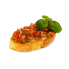 La bruschetta é un antipasto colorato e sfizioso, veloce da preparare. Ideale per essere servito in un buffet o per aprire un pasto accontentando i diversi gusti degli ospiti.